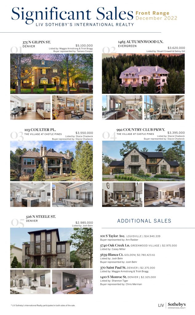 We are excited to help others live the life they love in their dream homes. Check out the most recent significant sales from our expert Front Range and resort brokers.