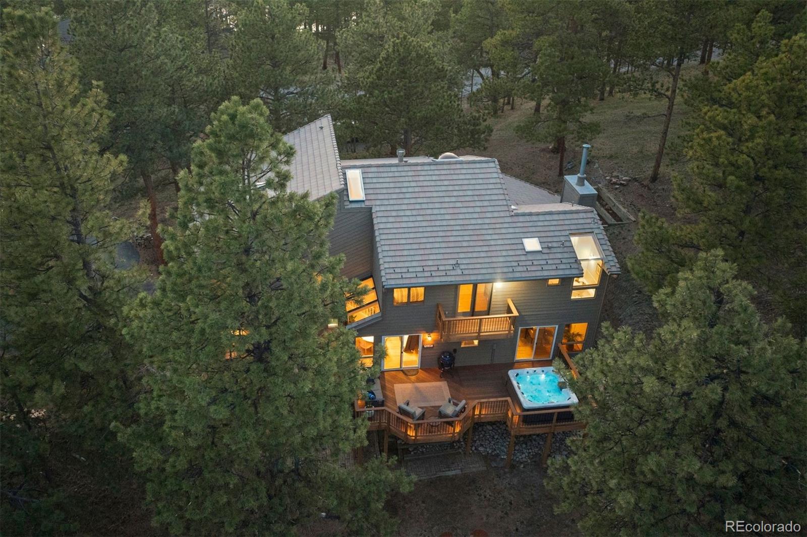 Tucked away on over an acre of tranquil land adjacent to open space, this charming custom-built home offers the perfect blend of mountain seclusion and everyday convenience. Perched on the desirable south side of Genesee, you'll enjoy sweeping views of both the majestic Front Range and the glittering Denver skyline. This rare duality delivers breathtaking sunrises and twinkling city lights at night. From the moment you arrive, the peaceful setting and generous driveway welcome you home. Inside, this thoughtfully designed residence features newly refinished hardwood floors, plush new carpet, fresh interior paint, and modern lighting. Multiple fireplaces invite cozy evenings, while expansive decks off nearly every room create a seamless connection to nature--ideal for morning coffee among the pines or stargazing under Colorado's clear skies. The spacious primary suite is your own private escape, complete with dual walk-in closets and a luxurious 5-piece bath with a jetted soaking tub. A main-floor study and formal dining room add functional elegance, while the finished walk-out basement provides a guest suite and additional family room for quiet relaxation or entertaining. Located in the heart of Genesee, you'll have access to 12 miles of private hiking trails, 1,200 acres of preserved open space, two pools, tennis and pickleball courts, a state-of-the-art fitness center, and a warm sense of community--all just 25 minutes from downtown Denver. Wildlife roams freely, the air is fresh, and life here feels like a permanent retreat. Come experience the rare privacy and beauty of true Colorado mountain living.